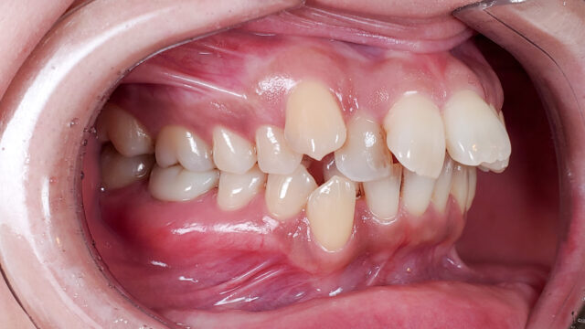 右上小臼歯・右下前歯を1本ずつ抜歯し、マウスピースによる矯正治療開始。