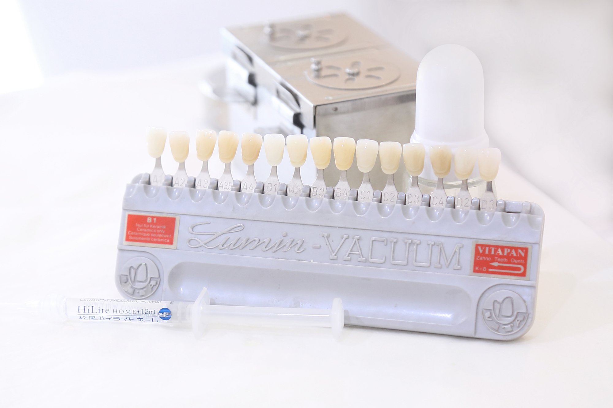 シェードガイドを使用しながら、「どこまで白くしたいか」を一緒に決めてから施術に入ります。