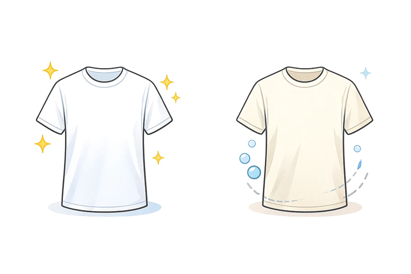 サロンホワイトニングは、Tシャツの黄ばみや汚れを落としたり、コーティング剤で白く見せるような、色物にも使える衣類用洗剤に近いイメージです。